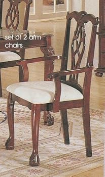 Set of 2 Antique Queen Anne Style Cherry Finish Wood Dining Arm Chairs Chair This is a brand new set of 2 Queen Anne Style Cherry Finish Wood Dining Arm Chairs. The chairs are also cushioned covered by White Ivory nylon polyester fabric. These two chairs are designed with quality and style in mind to match old style furniture motifs. The Queen Anne style legs coupled with the Cherry Finish wood elegantly enhances each aspect of the chairs. Hand crafted from solid hardwoods, these two chairs are made to match the beauty of the styled decor. Item is sold only in sets of 2 for safety in delivery and packaging. Item will require simple assembly. Specifications - Dimensions: 40"H - Style Type: Queen Anne - Materials: Solid Wood - Color: Cherry - Pieces: 2 - Finish: Cherry