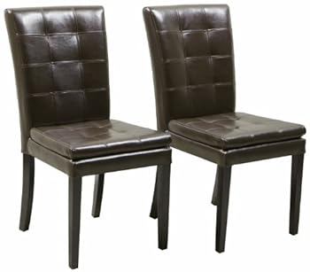 Our Barrington Dining Chairs are the perfect upgrade to your existing dining table. Built of strong hardwood, these comfortable chairs are well padded and covered in soft brown bonded leather. These unique dining chairs feature a tufted back design, complimenting your dining rooms existing decor.