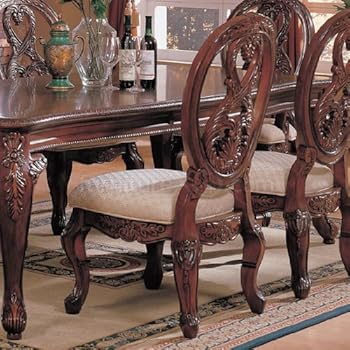 - Chair backs are a lozenge shape with a figure eight cutout and carved elegantly.