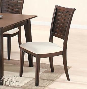 Dimension: 38"HFinish: EspressoMaterial: Wood, FabricSet of 2 Dining Chairs Contemporary Espresso FinishItem features a durable and soft to touch fabric.Matching table is available separately.Assembly required.